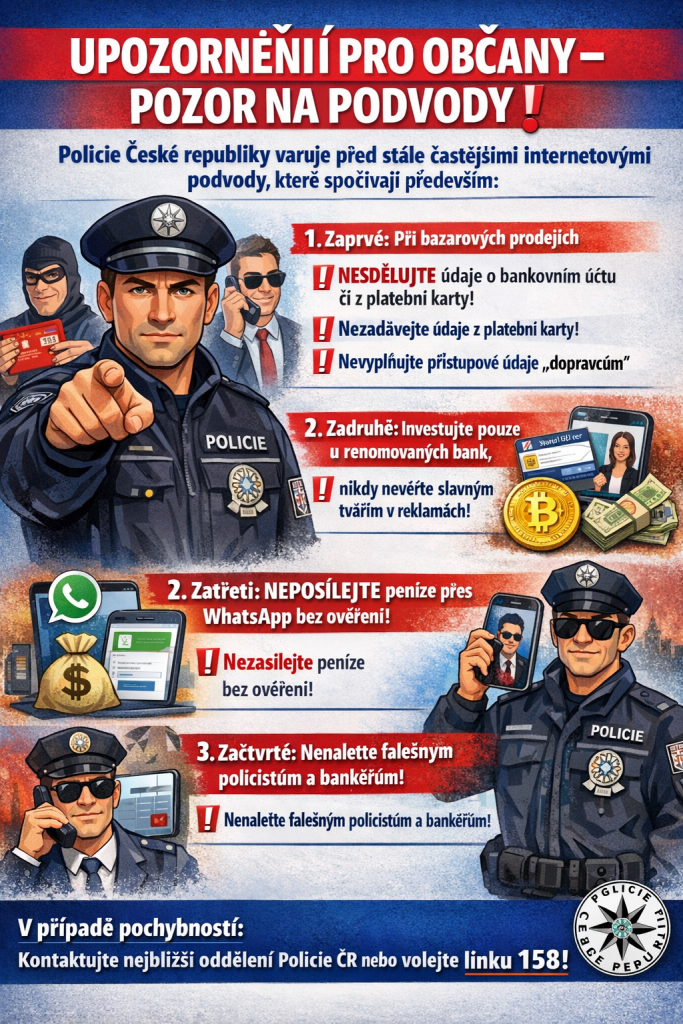 Policie České republiky varuje před stále častějšími internetovými podvody, které spočívají především: